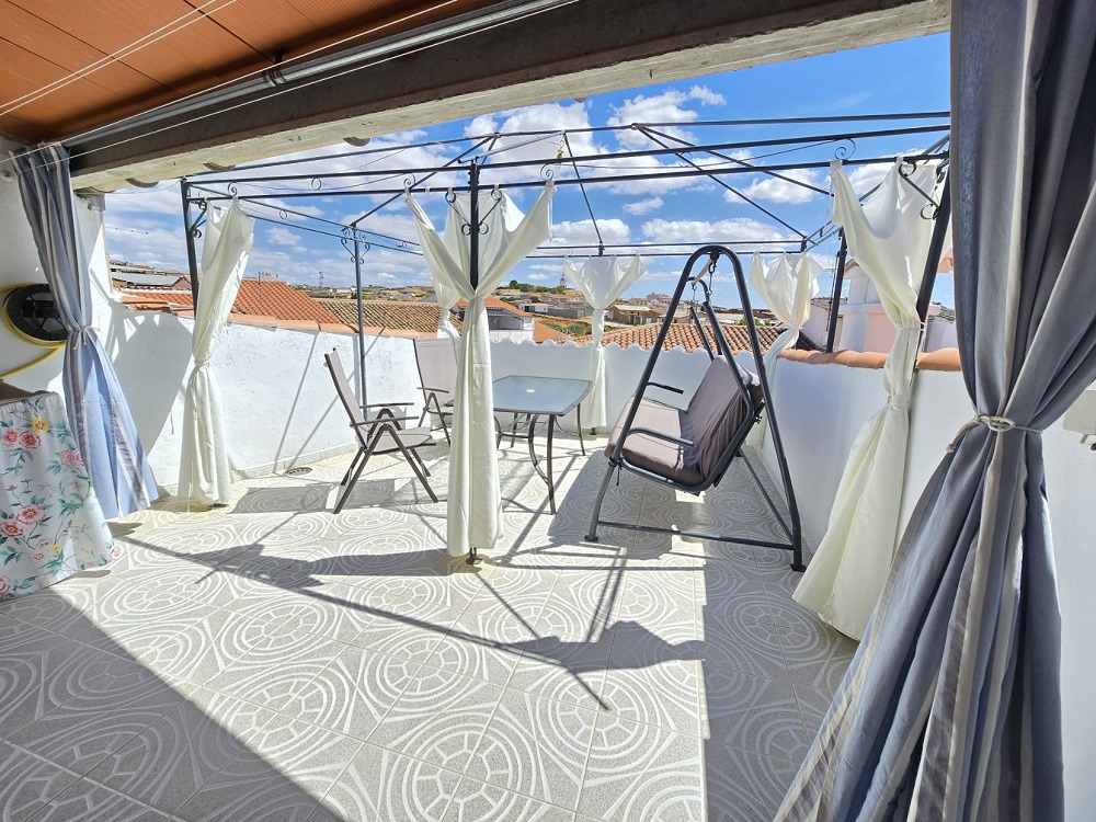 Venta de casa con una gran terraza, en la zona céntrica de Brozas (Cáceres), a 45 km de Cáceres y a 35 de Portugal, en un municipio con gran riqueza arquitectónica y que dispone de todos los servicios básicos (médico, farmacia, bancos, tiendas, bares, colegio, guardería…). El edificio dispone en planta baja de un dormitorio con armario empotrado, dos dormitorios mas, un baño, una salita y una despensa. En planta primera tiene un salón, una cocina con despensa y dos dormitorios. En la planta segunda hay un trastero lavadero mas una gran terraza. La vivienda dispone de tres fachadas que dan mucha iluminación y ventilación a todas las estancias. Se encuentra en buen estado de conservación.