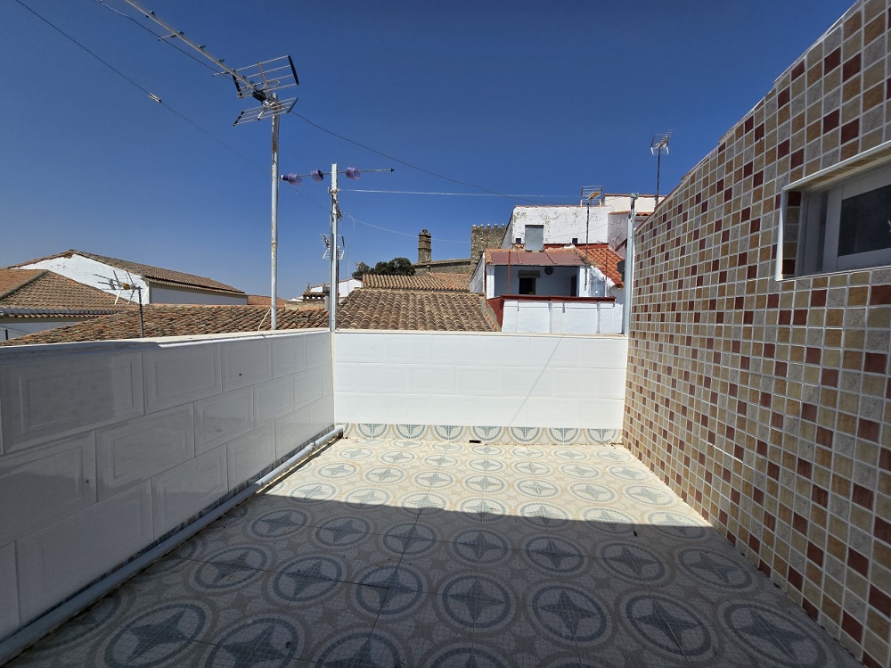 Venta de vivienda con terraza, en Brozas (Cáceres), un pueblo con mucha riqueza arquitectónica, tranquilo y con todos los servicios básicos (médicos, farmacia, tiendas, bancos, bares, colegio, guardería…). Se trata de una casa de tres plantas de altura que dispone en planta baja de recibidor, baño completo, alacena y tres dormitorios. En la planta primera hay un salón-comedor con Split de aire acondicionado, cocina, aseo, despensa y un dormitorio. En la planta segunda hay una salita, un dormitorio que ahora se utiliza como trastero y una preciosa terraza con una parte cubierta que tiene unas bonitas vistas. Se encuentra en perfecto estado de conservación. Ideal para vivir sin necesidad de obras, como segunda residencia o como inversión.
